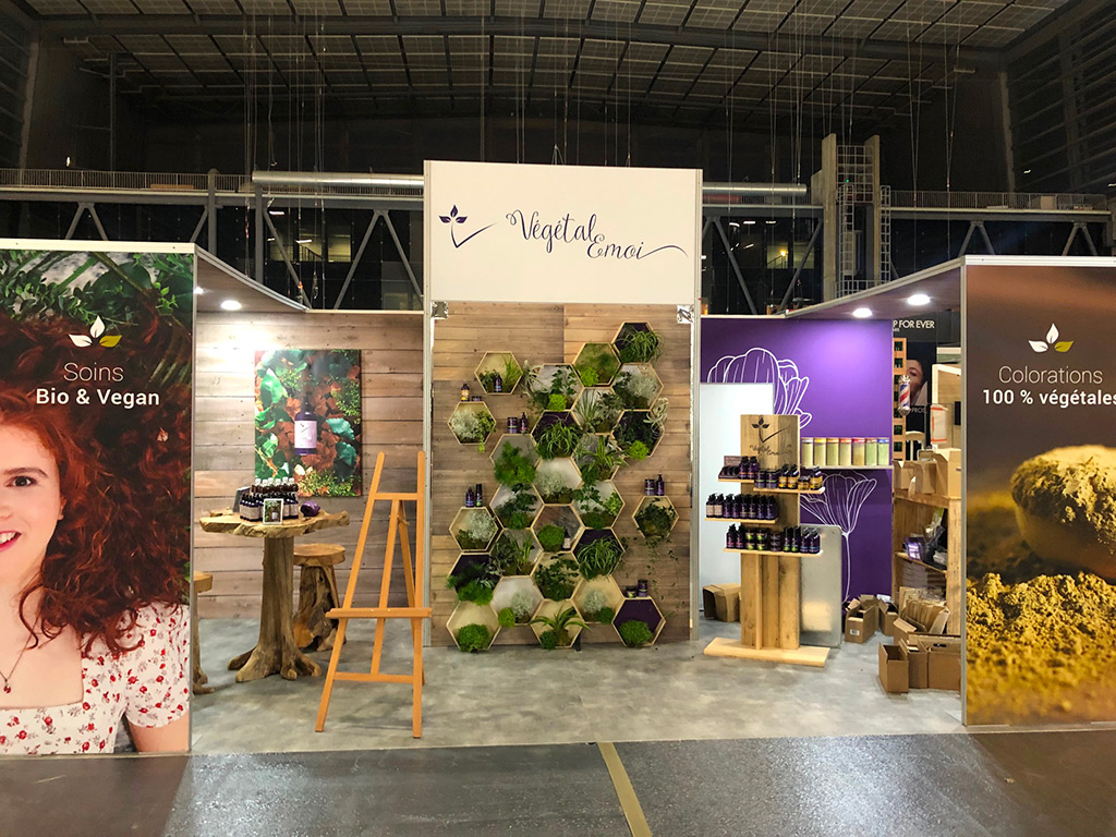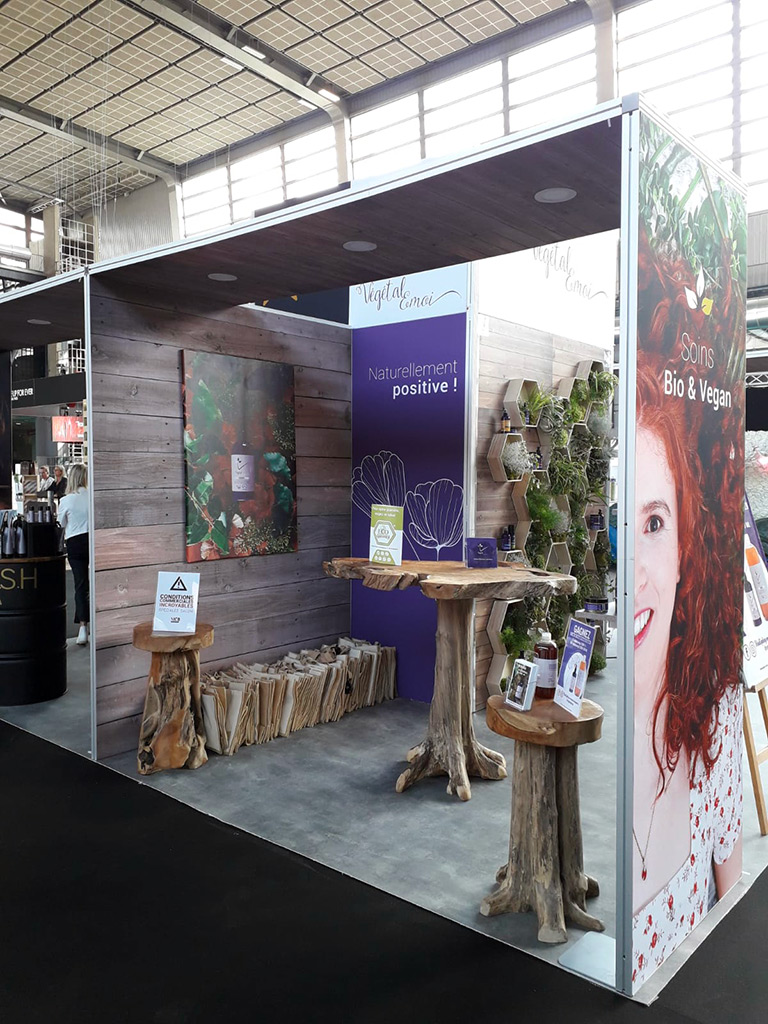 Un stand clé en main, réalisation de la structure modulaire, impression des visuels, réalisation d’un mur végétal, installation de l’éclairage, montage et démontage sur un salon à Paris pour notre client !
